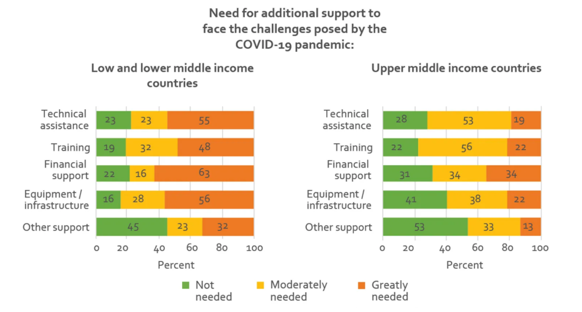 The responses collected from the chief statisticians of over 100 countries help understand concrete support needs and how they may best be addressed to help countries navigate this unprecedented crisis. They also highlight stark differences across regions and income levels, as statistical agencies in low- and middle income countries face the highest level of disruption to their operations and have the greatest needs in terms of technical assistance and financial resources. An overview of highlights from report is available here: https://covid-19-response.unstatshub.org/statisticalprogrammes/priority-needs-of-national-statistical-offices/